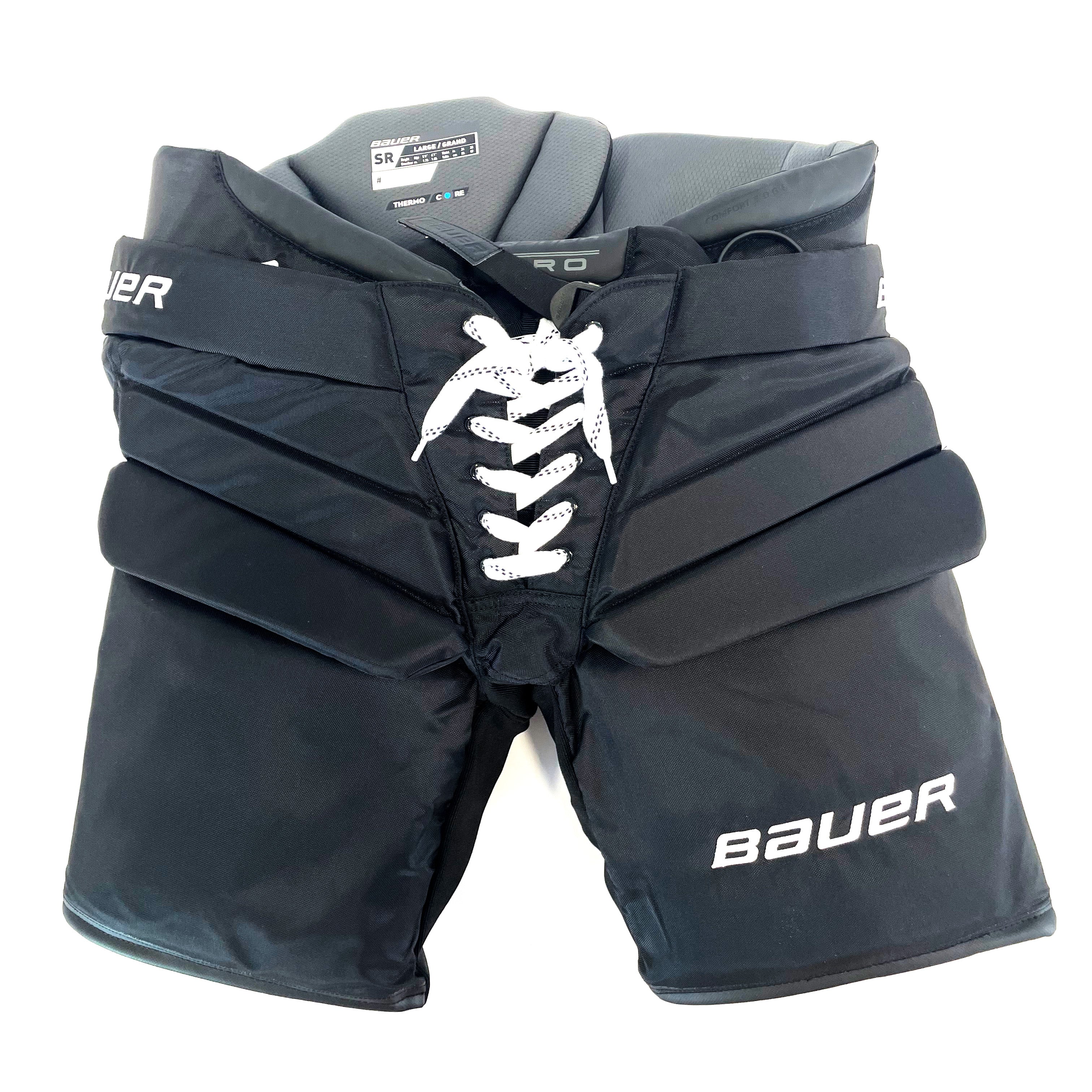 HSM carries hockey goalie equipment that was designed for the best goalies in the NHL, AHL, NCAA, and Major Junior hockey leagues. We list our options as Full Goalie Sets, Glove Sets, Goalie Pad Sets, and individual blocker or catcher. These products can be new or used and will be specified in the product title. Right is for goalies that catch with their right hand, and Left (Standard) is for goalies that catch with their left hand. We have the best selection or pro stock goalie equipment on sale. With custom colour options including black, red, navy blue, blue, royal blue, white, wood colour, and more, there's plenty to choose from to match your goalie pads to your team. From Bauer, CCM, Vaughn, True, Warrior and Pro Blackout, we do our best to source all types of brands for our goalie customers.