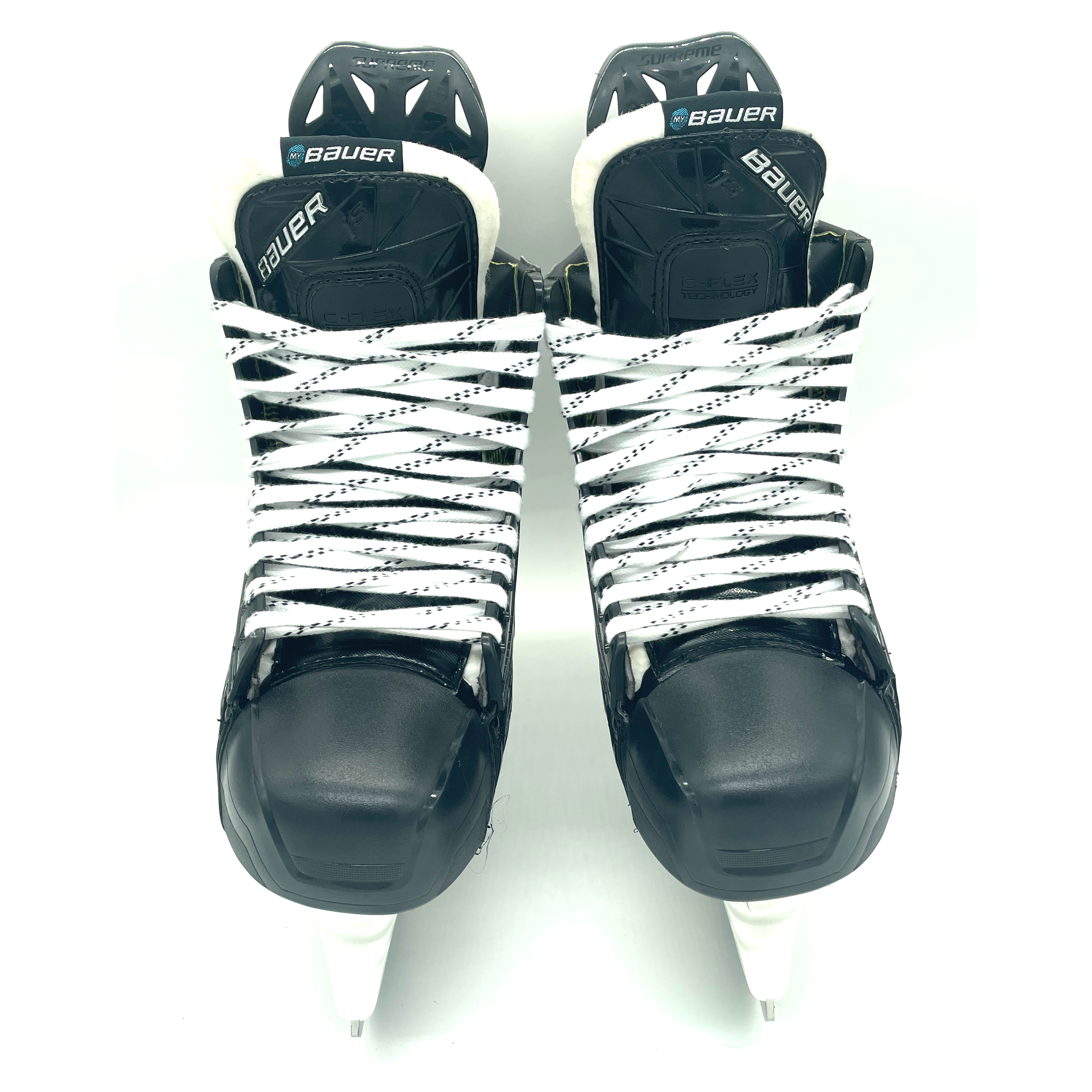 Bauer Supreme 2S Pro skates from the AHL. These skates are size L10 R9.75 with 288 Tuuk Lightspeed Edge holders and LS4 steel. This player chose to have 1S tongues put into the 2S boots.