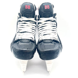 These used skates are fully custom to Bowen Byram. They are in good condition with general wear and only feature cosmetic blemishes. These skates are sized 10.25 with a 288 holder size and LS4 steel.