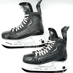 Size 7.5D featuring XS holders and used Step Blacksteel. Featuring Shot blockers on the inside and outside of each skate. Each Skate displays the name “Mack” and the number 4 on the tongues. These skates are in very good used condition with minor cosmetic damages.