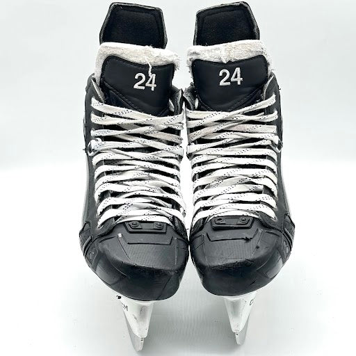 Size 8D featuring 272 Bauer Lightspeed Edge Tuuk holders and used LS3 stainless steel. Skates feature the number 62 on both the heel and tongue of each skate. These skates are in very good used condition with minor cosmetic damages.