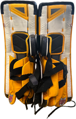 Vaughn Velocity V10 - Used Pro Stock Goalie Pads (White/Navy/Yellow)
