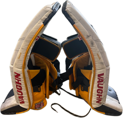 We work hard to source the absolute best deals for our customers, like this Vaughn Velocity V10 - Used Pro Stock Goalie Pads (White/Navy/Yellow)